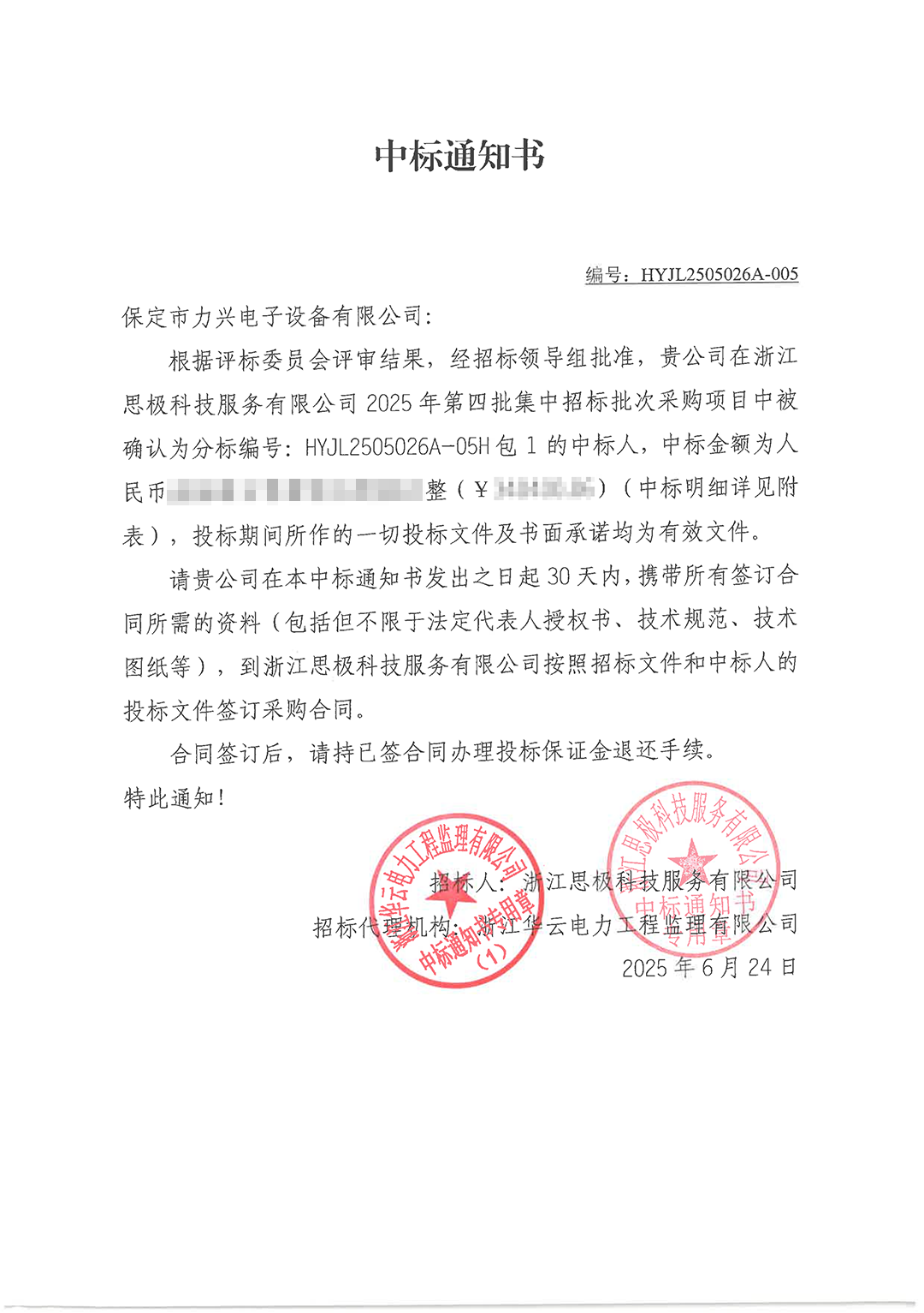 保定市力兴电子设备有限公司第二季度中标通知如下展示,我们将团结一致,再接再厉,迎接已经到来的第三季度。